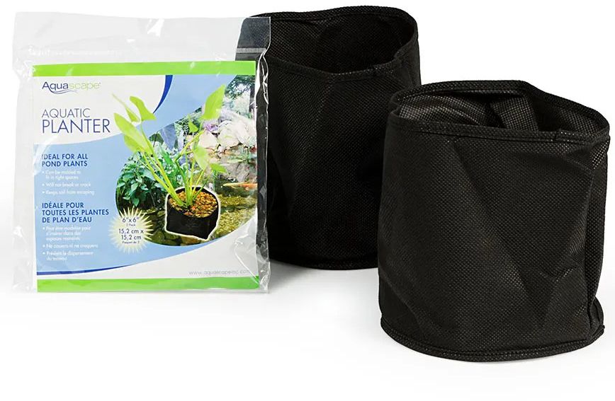 Aquascape Aquatic Planters allow you to quickly and easily add aquatic plants to ponds, waterfalls, and other water features. Made from fine, porous material, the planters allow water in while preventing soil from entering the pond, helping to keep your pond clean and clear. The flexibility of the material prevents them from breaking or cracking and makes it simple to place the plants in tight spaces where typical plastic pots may not fit. The black color of the planters allows them to easily blend in with their surroundings. Two planters are included.